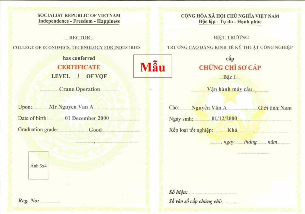 Sau khi hoàn thành khóa học, những học viên đạt yêu cầu được cấp Chứng chỉ Sơ Cấp Vận Hành Máy Xúc, có giá trị Toàn Quốc.