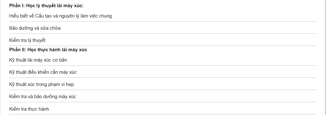 – Sau khi hoàn thành khóa học, những học viên đạt yêu cầu được cấp Chứng chỉ Sơ Cấp VẬN HÀNH VẬN HÀNH MÁY XÚC, có giá trị Toàn Quốc.