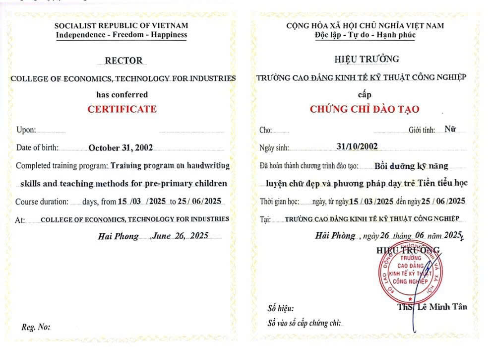 Giai đoạn tiền tiểu học (5-6 tuổi) là bước ngoặt quan trọng, đặt nền móng cho thói quen học tập và tình yêu chữ viết của trẻ. Để đồng hành cùng con hoặc trở thành một giáo viên, chuyên viên giáo dục giỏi, bạn cần trang bị cả kỹ năng luyện chữ đẹp chuẩn mực lẫn phương pháp sư phạm phù hợp với tâm lý lứa tuổi. Khóa Học Online Kỹ Năng Luyện Chữ Đẹp & Phương Pháp Dạy Trẻ Tiền Tiểu Học của trường Cao Đẳng Kinh Tế Kỹ Thuật Công Nghiệp được thiết kế chuyên biệt, chính là giải pháp toàn diện dành cho bạn. Khóa học kết hợp giữa nghệ thuật viết chữ và khoa học giáo dục, giúp bạn tự tin hướng dẫn trẻ một cách bài bản và hiệu quả nhất.